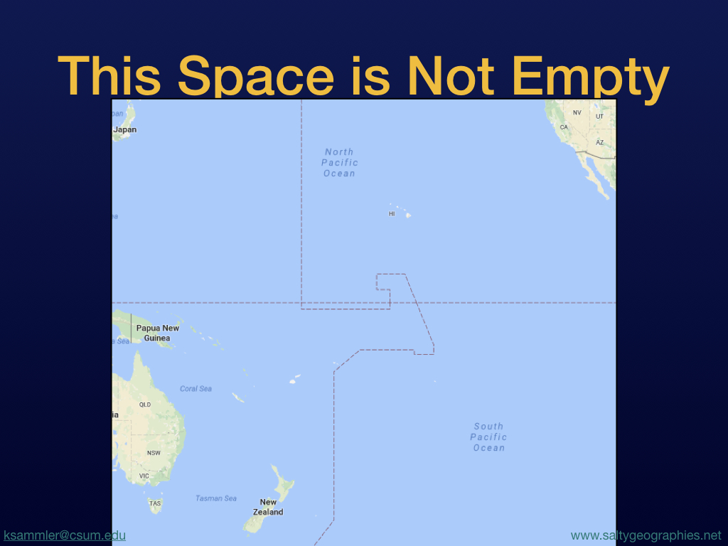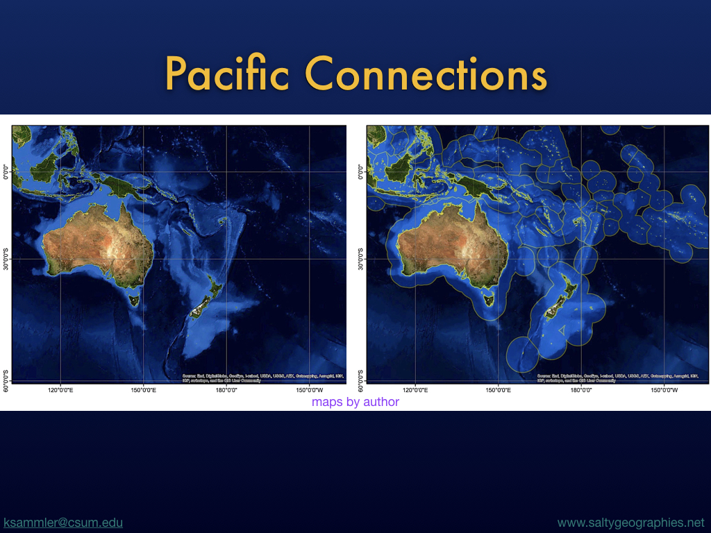 ABSTRACT: We will explore ways of seeing science, culture and geography from the South Pacific, offering a different perspective from the dominant continental gaze, regarding coastal resources, boundary drawing and rights in ways that blur authoritative land/sea divides.