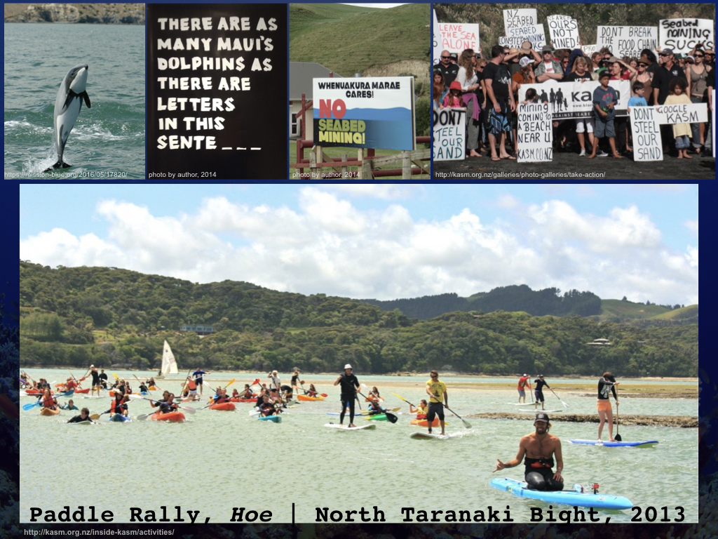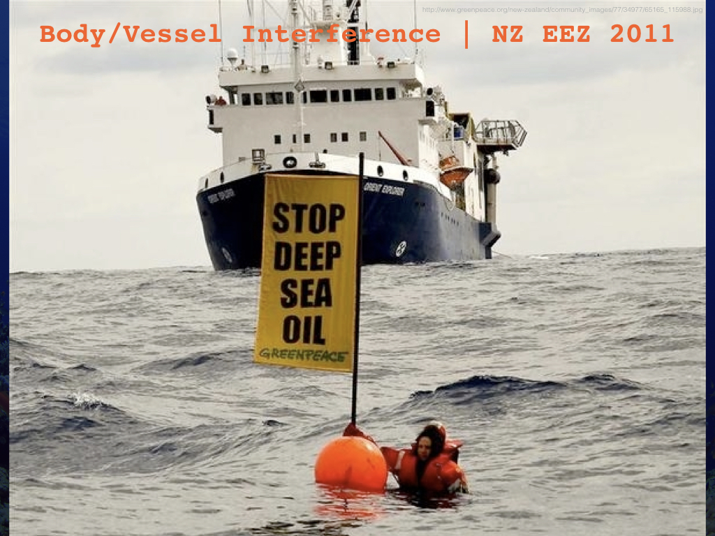ABSTRACT: As the deep seabed, yet again, is being promoted as the next frontier for large-scale resource extraction projects that brandish potentially huge riches, it is important to look to those that are resisting offshore development practices. From paddle boarders building a coalition of resistance to seabed mining, Zodiac boats blocking survey vessels in a marine mammal sanctuary, kayaktivists impeding drilling platforms sailing to the Arctic, to flotillas spreading a message of ocean protection village by village, groups across the Pacific are engaging in new forms of resistance. Ocean issues might themselves be a new frontier for organizing tactics and strategies, strategies that like the ocean itself flow across borders, industries, interest groups and can be used to forge connections and build solidarity. Following on this, and employing what Steinberg and Peters call a “wet ontology,” we might consider how we can further employ “wet” coalitions, resistances, and emancipations on, in, and near the sea.