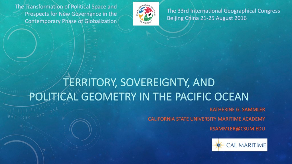 2016 Sammler, K. Territory, Sovereignty and Political Geometry in the Pacific Ocean. International Geographical Union, Beijing, China, 21–25 Aug.