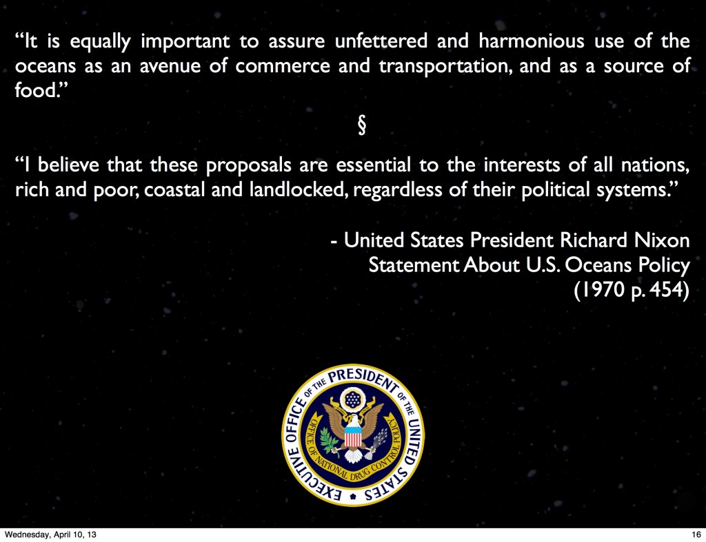 ABSTRACT: This paper examines how ocean space has been incorporated into the global capitalist system through subsumption under state control and how this incorporation has been successful for exploitation but a failure for management and conservation. The ocean exhibits a nebulous, ephemeral and turbulent materiality, making it difficult to be fully captured and incorporated into a state-building project. Notwithstanding, ocean space has been marked, mapped, categorized and made legible enough for the exploitation of resources. While it may be considered a contested and peripheral region, it is nonetheless a target for state subjugation and organization. One manifestation of the state’s inability to manage or render legible ocean space is the North Pacific Trash Gyre, a collection of debris that travels with prevailing winds with no regard for legal boundaries.This paper considers how emerging spatial theory reorients the way that we conceptualize the material politics of the ocean, while also analyzing Law of the Sea boundaries, specifically in the Exclusive Economic Zone, in relation to the flow of marine debris. Some of the questions I address include: How does statecraft in the Pacific Ocean attempt to transform ocean space into a viable economic resource? Does a capitalist state need to maintain fractal sovereignty and ambiguity to fully exploit the ocean as a location that is both national and international? Is there a conflict between nation-states, the international community, and global capital in the production of such space and its resulting externalities?